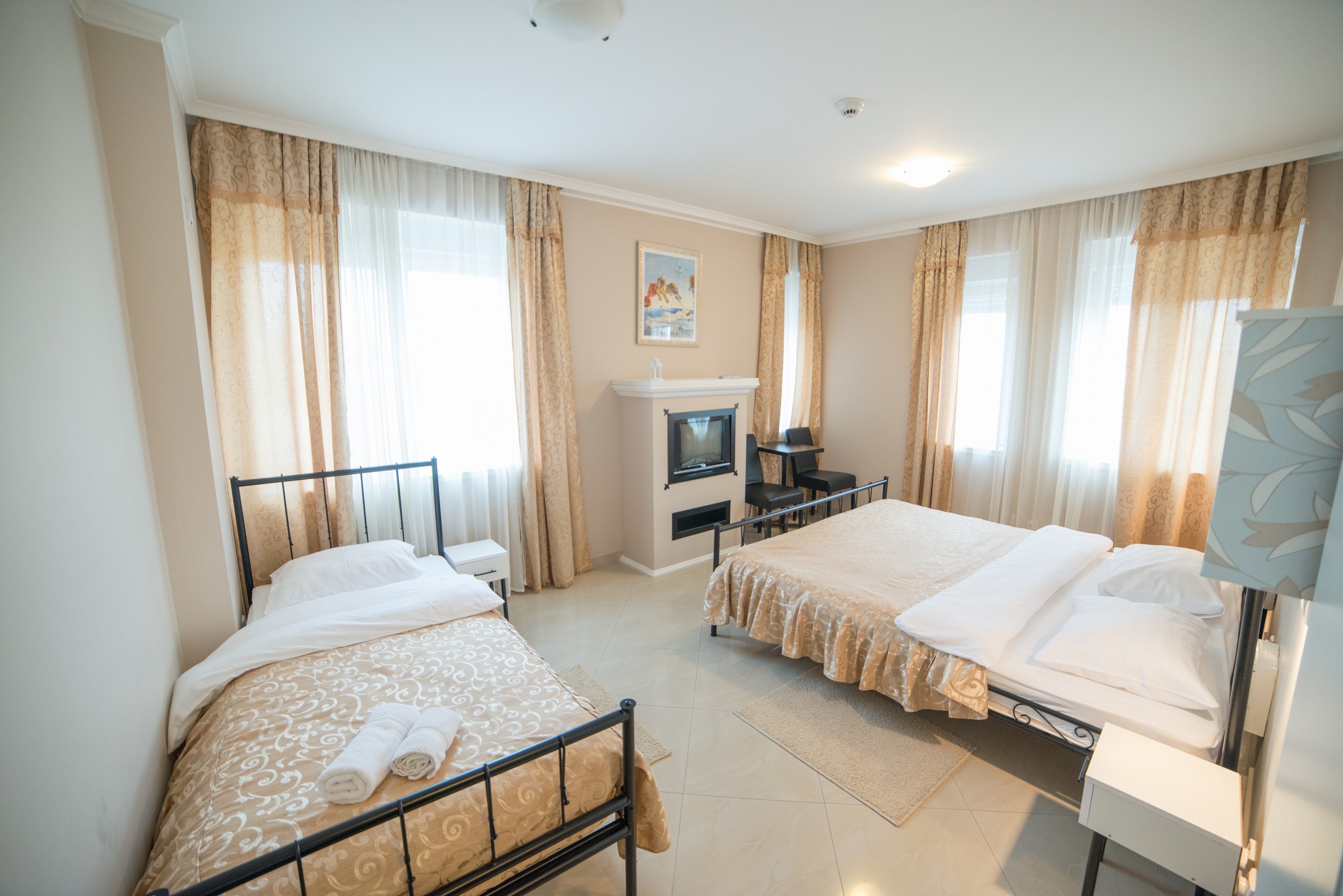 nalaze i po jedan mini-bar, TV, direktna telefonska linija i klima uredjaj. Ceo hotel